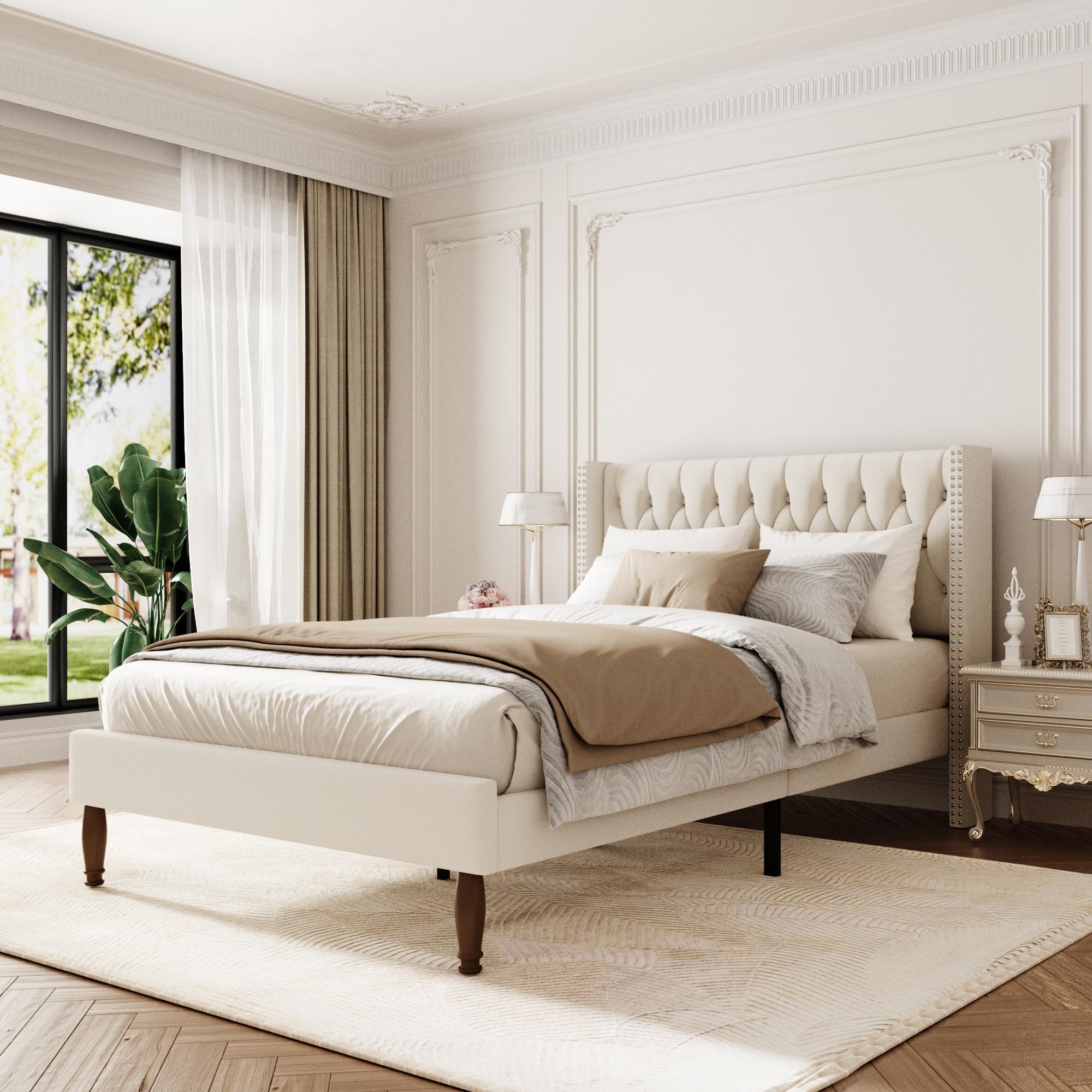 - Standing at 49.2 inches tall, the headboard features an expansive wingback design, exuding an air of grandeur and refinement