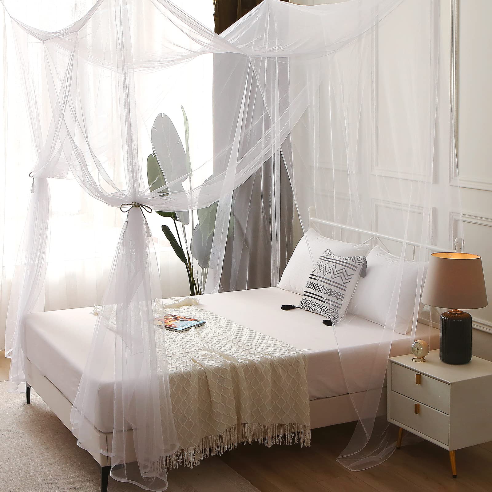 - High Quality: The 4 corner post mosquito net bed canopy is made of 100% polyester, soft and light.Fine mesh(300 holes per inch2) protect you even against tiny mosquitoes,keeping you a peaceful and relaxing night's sleep.