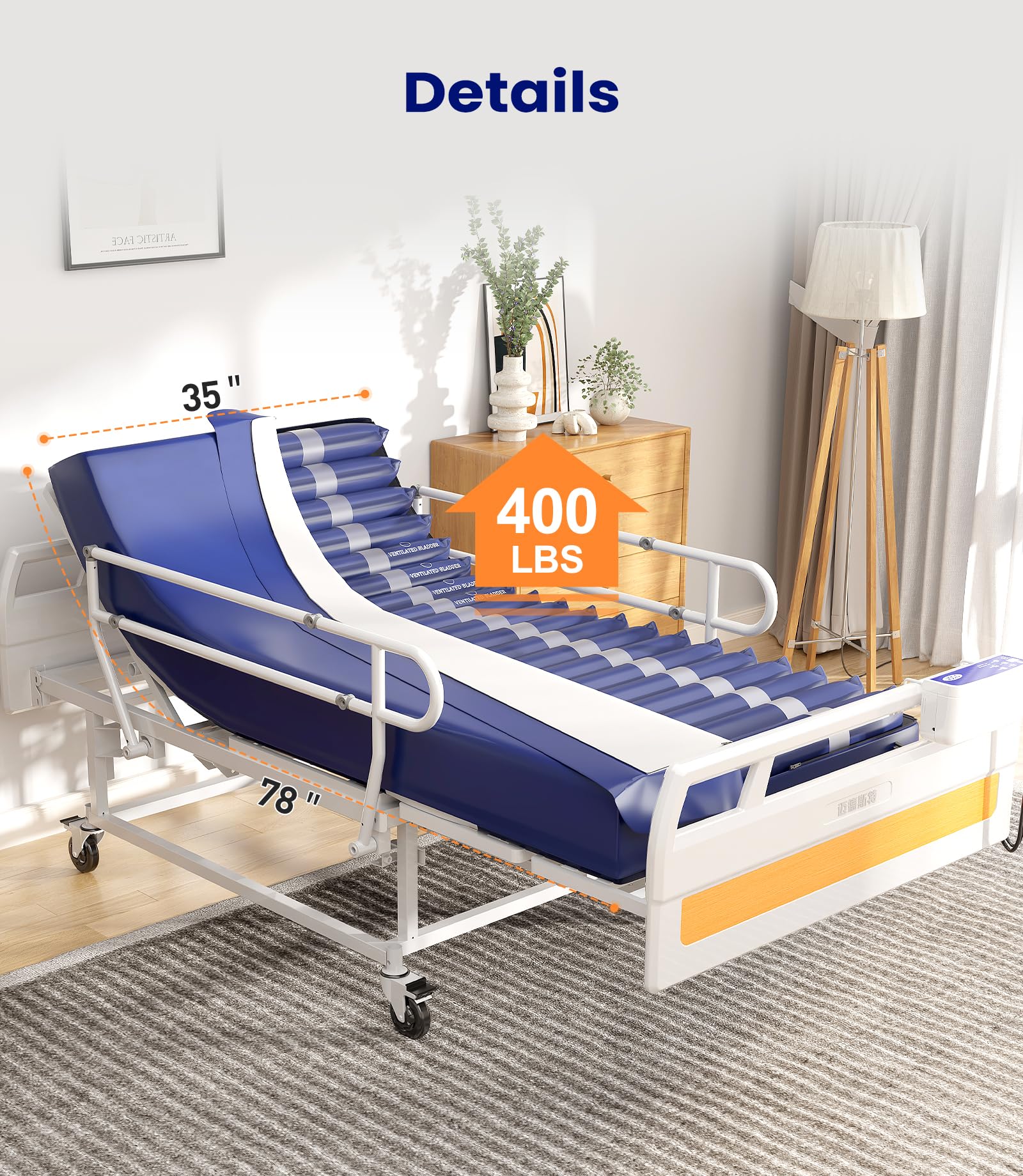 - [Packaging & Warranty] - Our mattress is designed to fit most hospital beds. Including 1 air cushion, 1 air pump, 2 air tubes, 1 spare airstrip with repair tools, 2 spare fuses, and 1 user manual. One year free after-sales service ensures that any problems with the mattress will be solved in a timely manner.