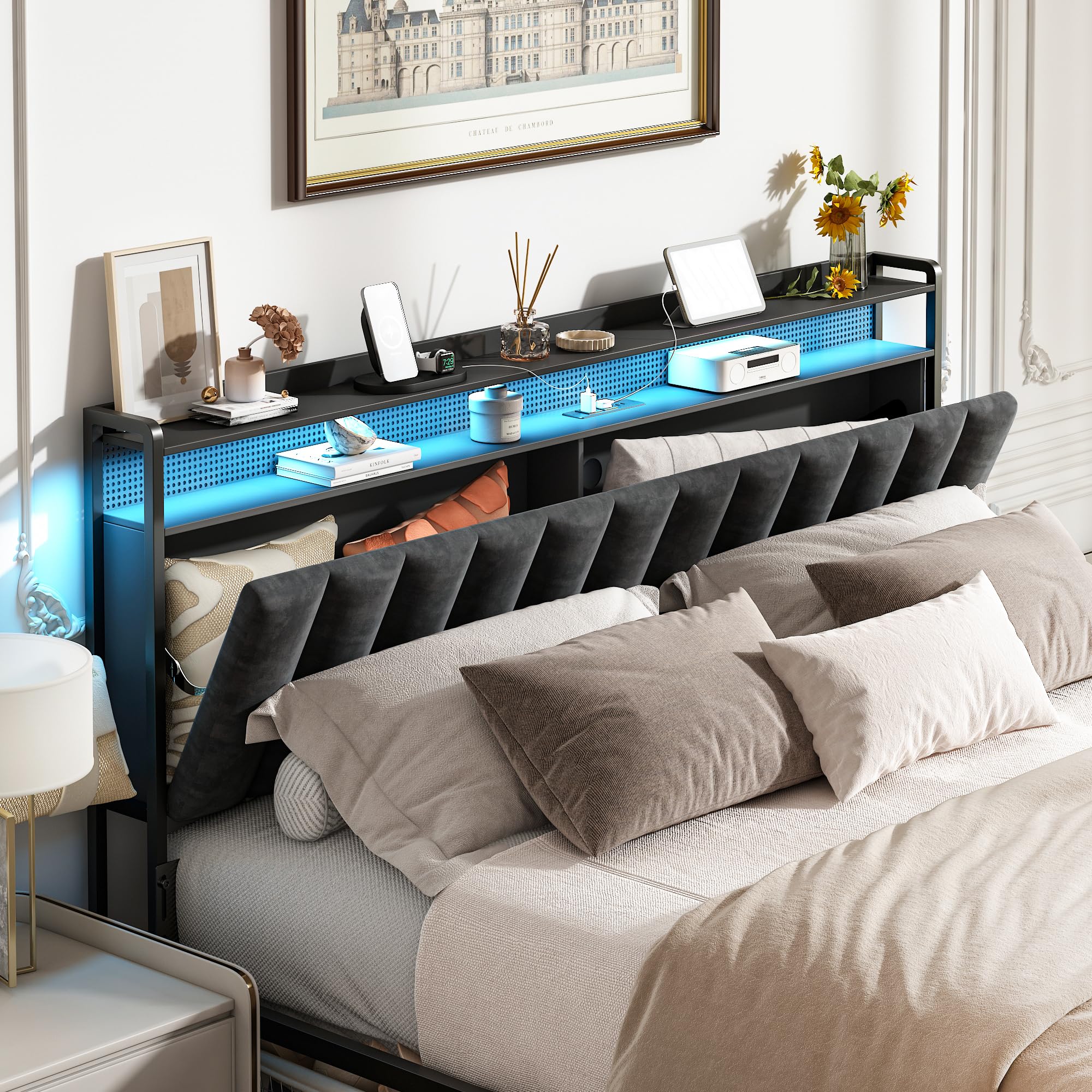 - Smart LED Headboard: Our LED headboard has over 60,000 colors and 29 dynamic modes, this LED strip allows you to change the ambiance of your bedroom to suit your mood or preference, creating the perfect atmosphere for your leisure time