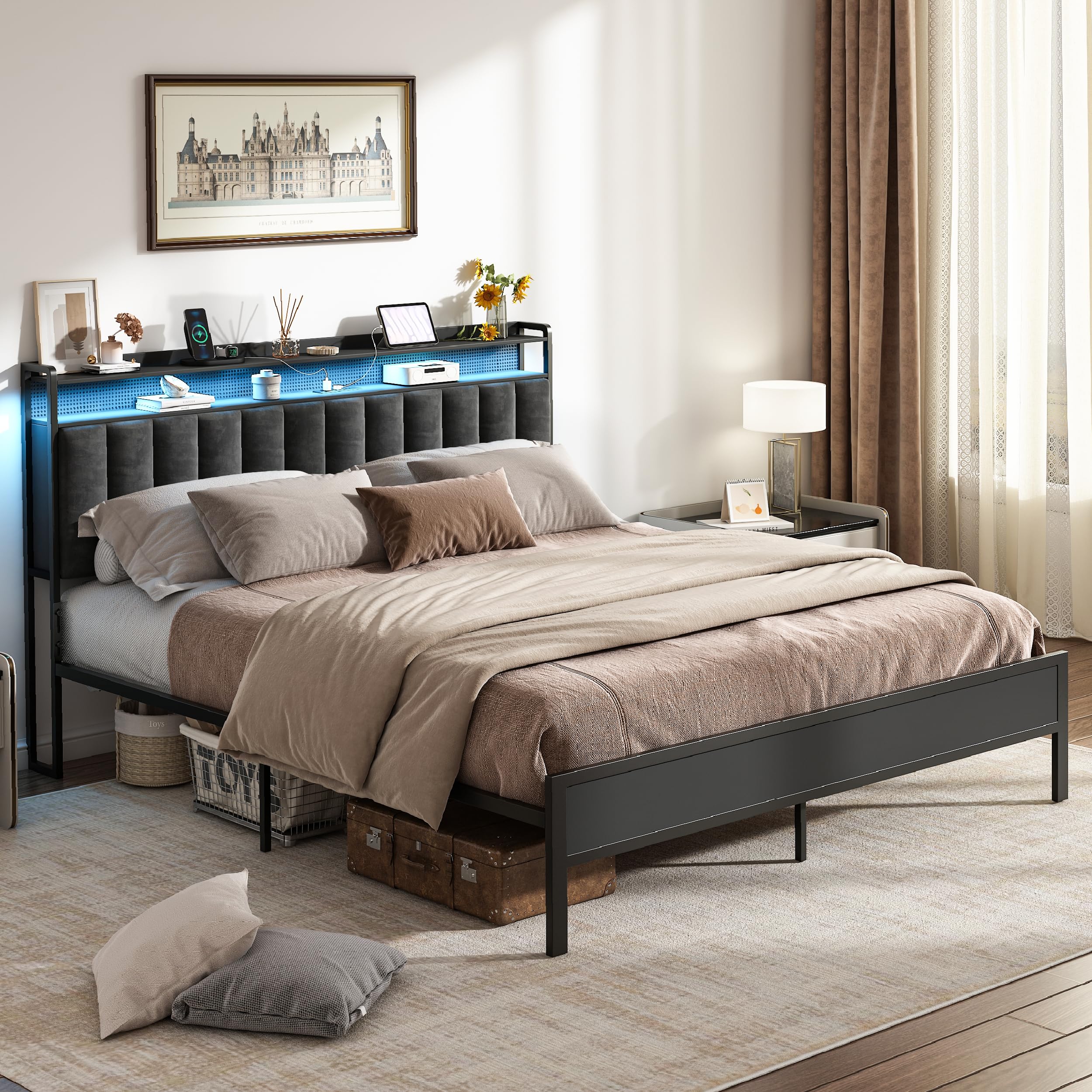 - Headboard with Charging Station: The King headboard only has 2 standard outlets and 2 USB ports built-in, you can charge your phone in bed at any time, conveniently charging your phone, tablet, smartwatch, lamp and other devices without having to get up and look for an outlet