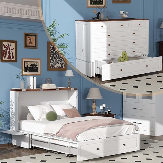 - Design of Multi-functional Cabinet The Murphy bed cabinet can be immediately transformed into a bed, and its efficient storage maximizes the floor space of the apartment/office. The Murphy bed is stable and has a smooth warm white finish