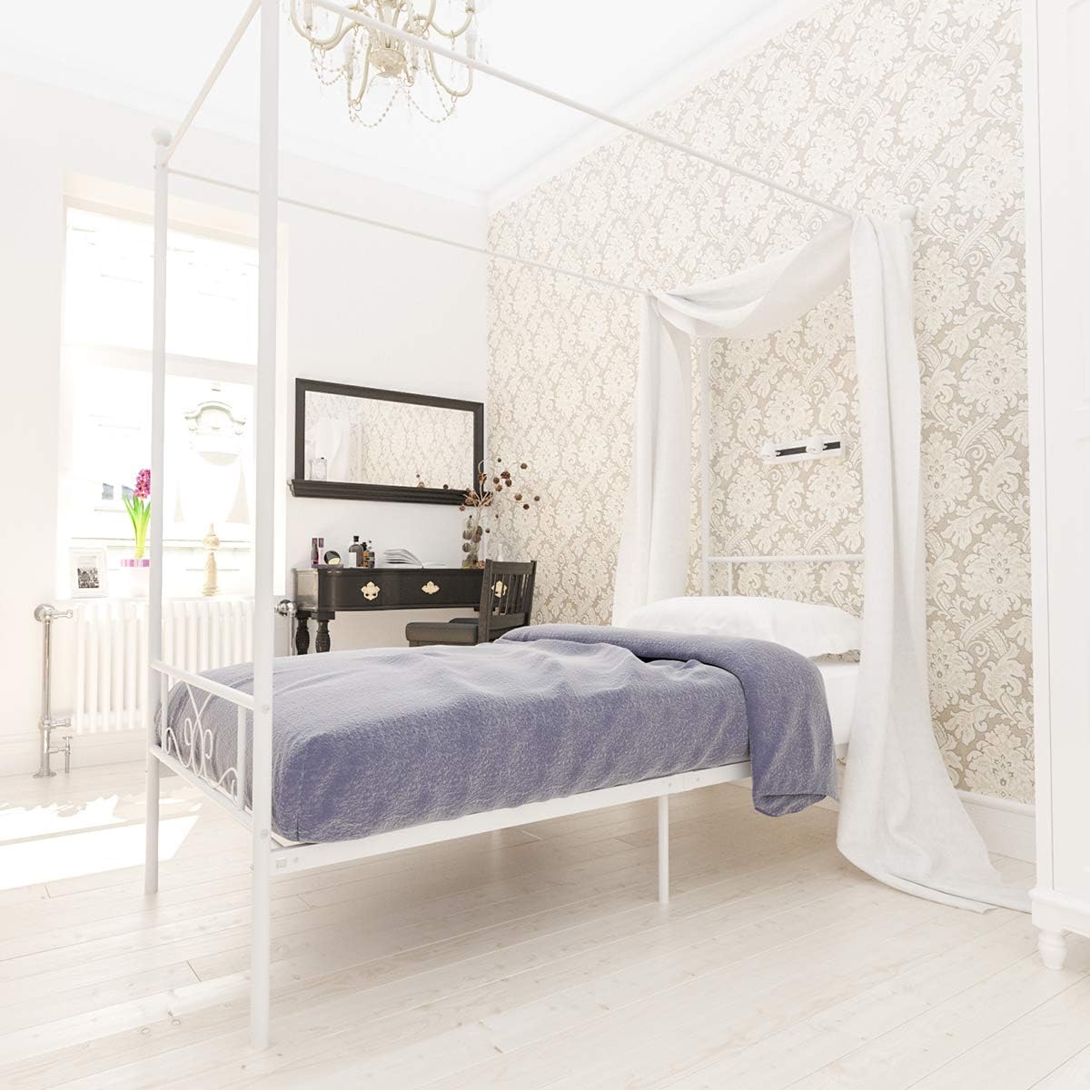 - Twin Canopy bed frame features a headboard and footboard, an elegant addition to a toddler, guest or kid bedroom, the bed frame's metal slats offer quality mattress support.