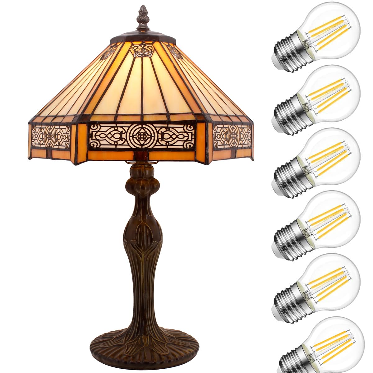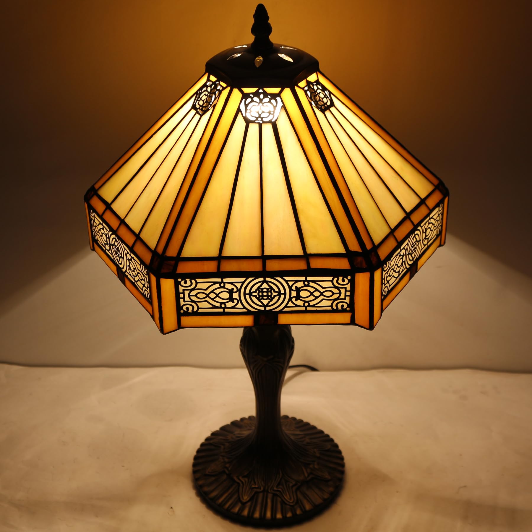 Tiffany Lamp Yellow Hexagon Stained Glass Mission Style Table Lamp Desk Bedside