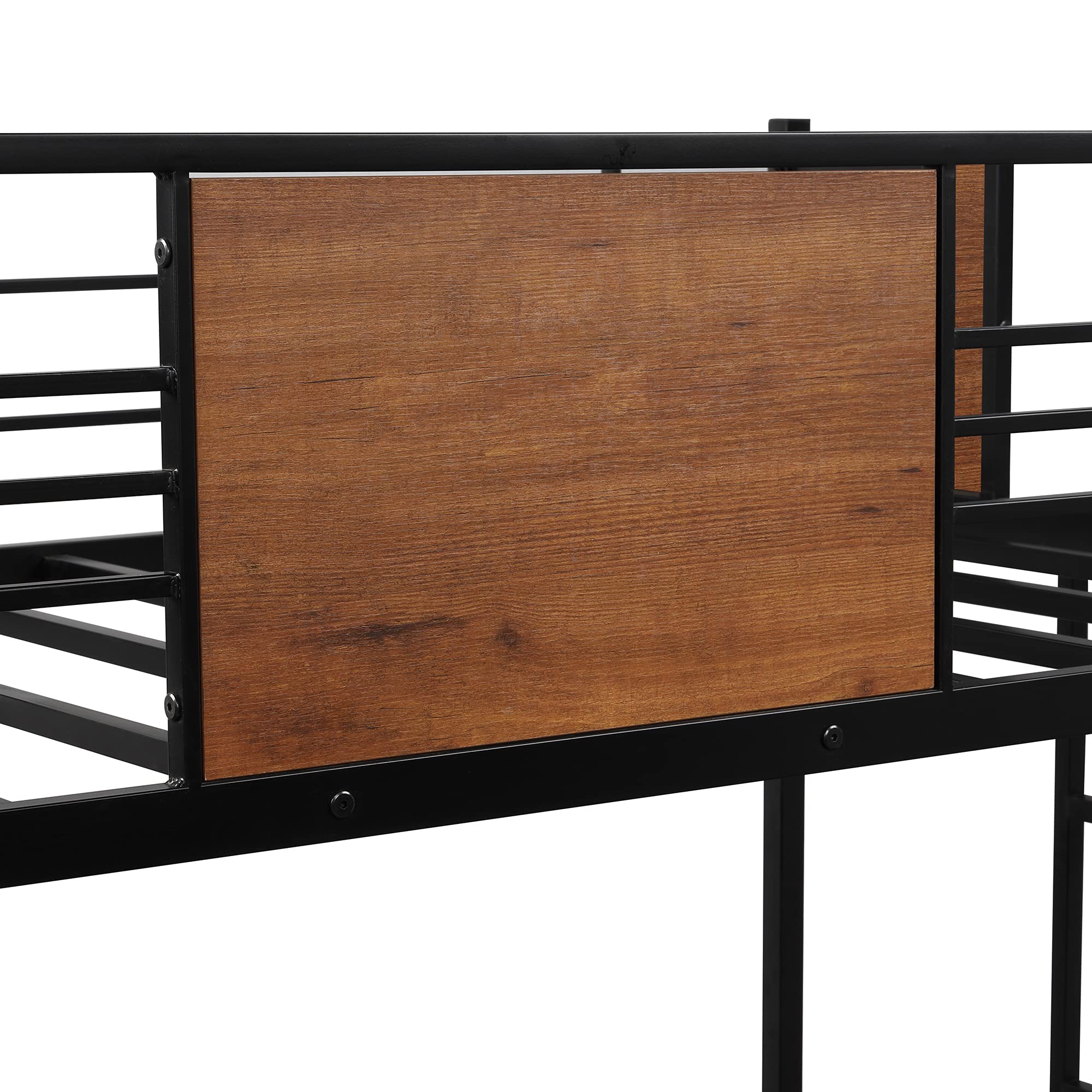 - This bunk beds designed with all black frame stylishly, brings a chic look to your bedroom. Made by strong and sturdy steel metal with powder coated finish Metal,provides durability and stability. The metal slats support the mattresses not to slag and also increase the mattresses life