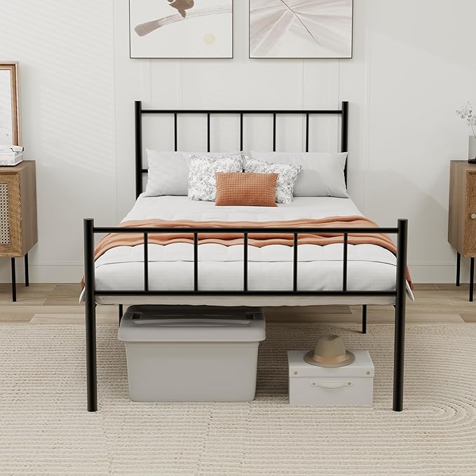 Metal Platform Full Bed Frame with Headboard Sturdy Steel Slats Support No Box Spring