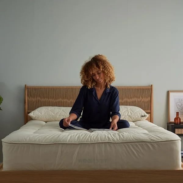 - GET SET WITH SUPERB SLEEP: With 67% better moisture management than down/feather, our hand-crafted 30 oz/sq yd British wool-filled mattress pad with a soft and breathable organic cotton cover provides exceptional temperature regulation all-year round