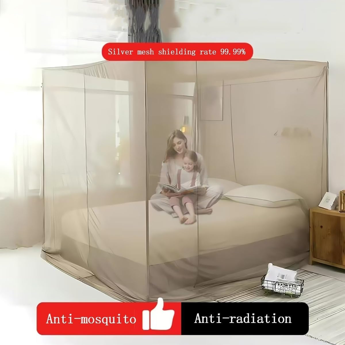 - Silver Coated Mesh Protection Canopy: The thin fabric is very soft to touch while the transparency prevents any claustrophobic feelings during the night. Crucially, the EMF-fighting attributes keep various harmful signals at bay, including those from WiFi routers, cell phones, and other household devices.