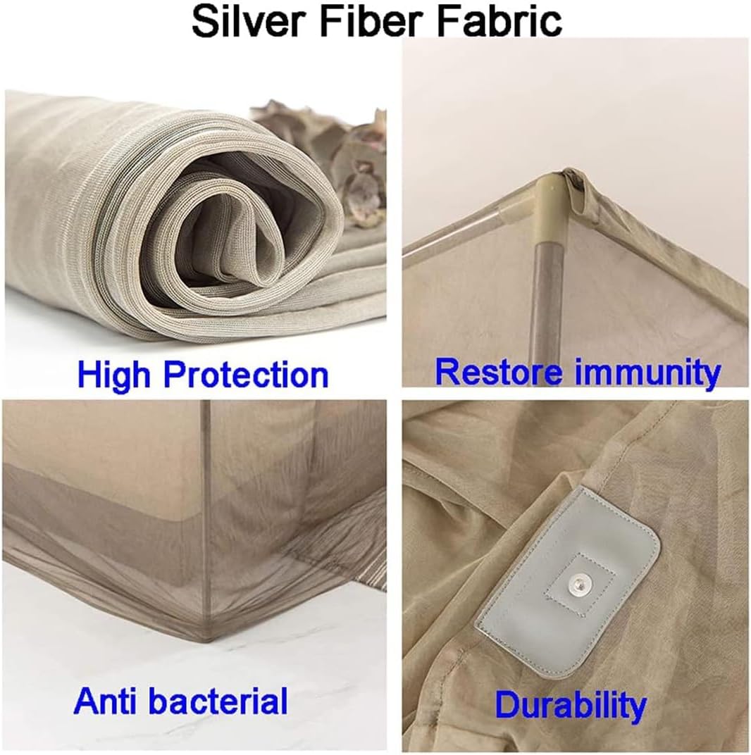 WSJZFFF 100% Silver Fiber EMF Shielding Bed Canopy,Blocks Radiation/EMF/WiFi/5G & Other RF Attenuation 10MHz-10GHz 35-60dB(120x200x185CM)