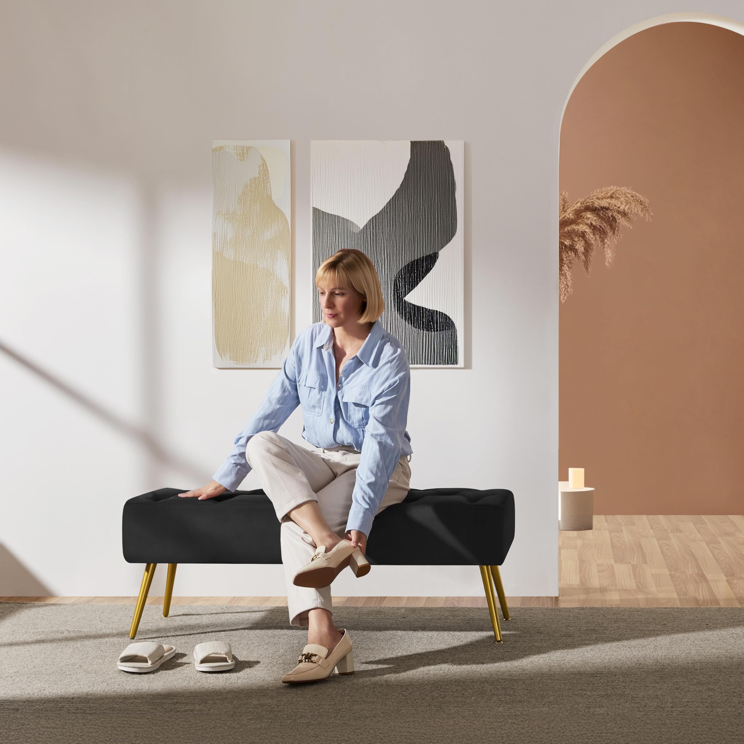 - Simple & Versatile design: A perfect combination of fabric and metal delivers a sense of warmness and a soothing vibe to your place. Along with a plurality of color colors, this tufted bench is compatible with most decoration styles.