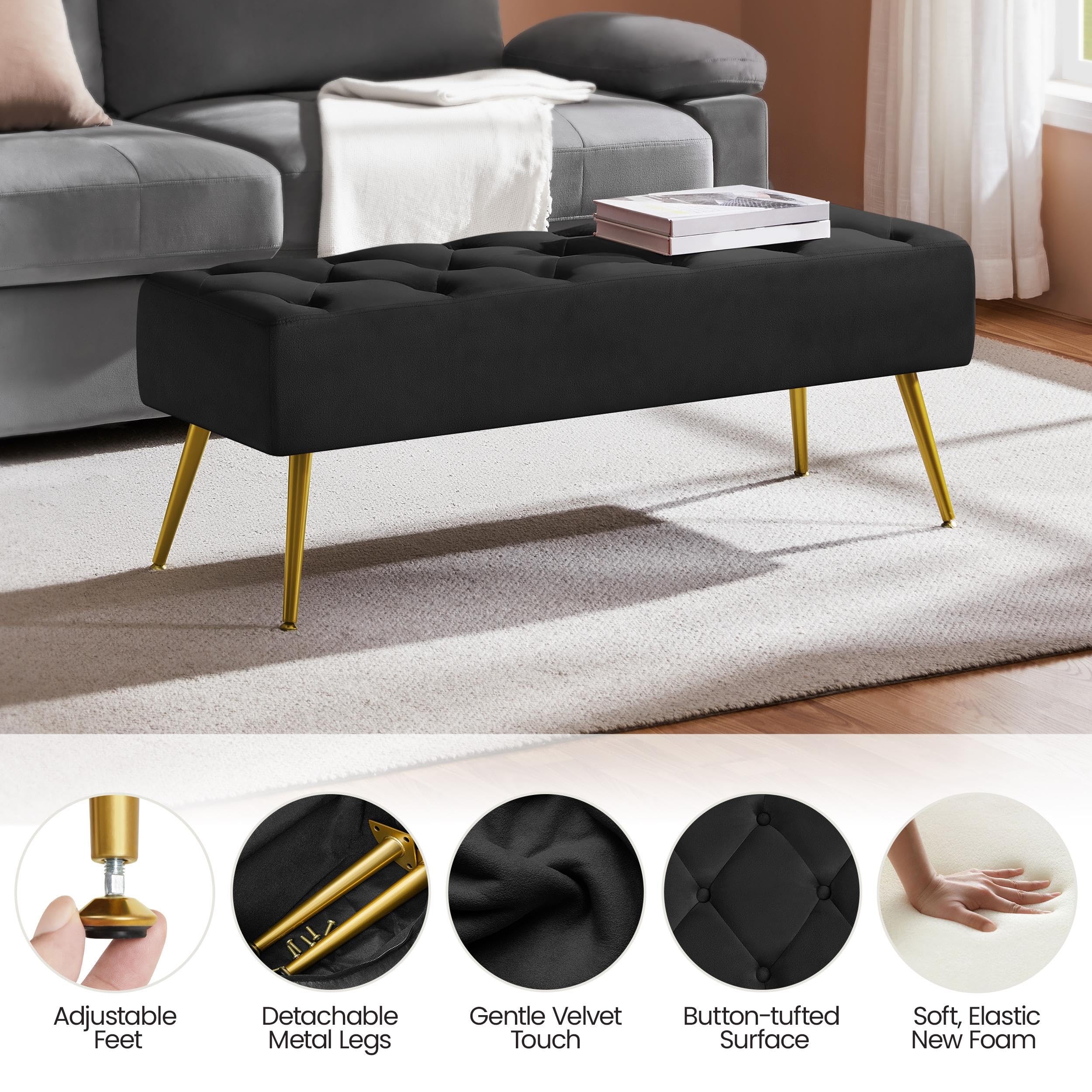 Modern Ottoman Bench Velvet Bench Upholstered Footrest with Gold Metal