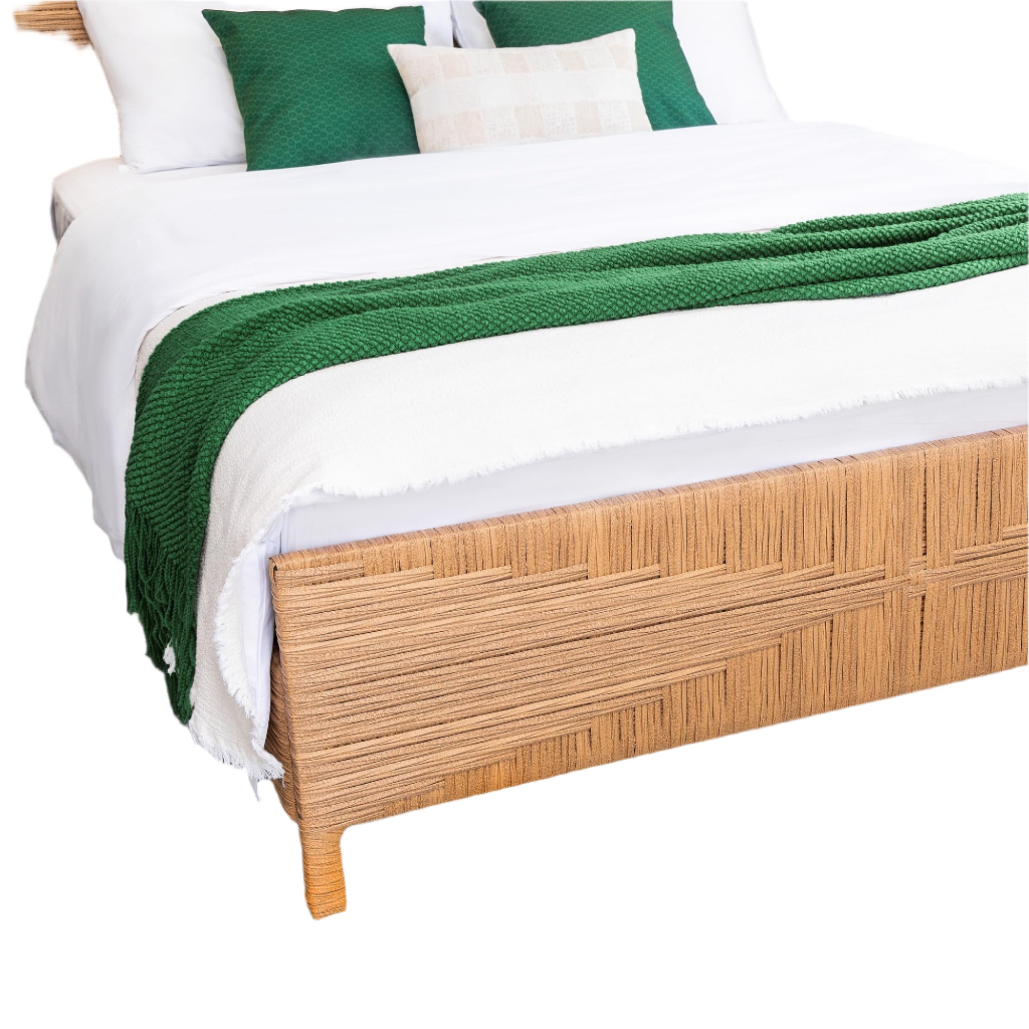 Rattan Boho Full Bed Frame with Headboard and Footboard, Hand-Woven