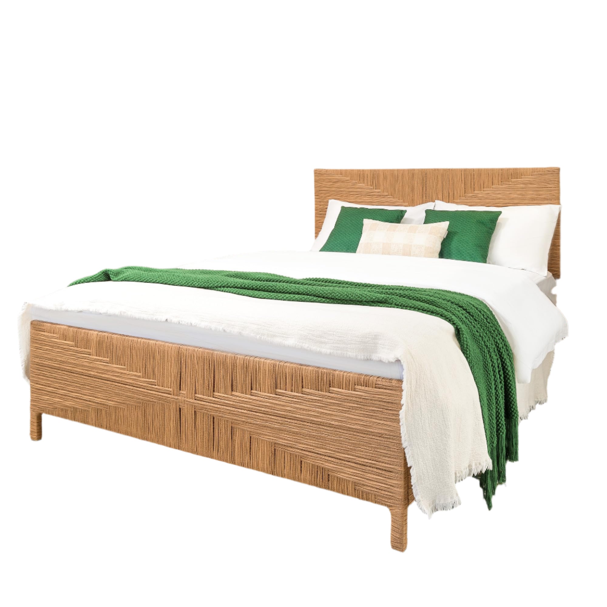 Boho Queen Bed Frame with Headboard and Footboard, Hand-woven