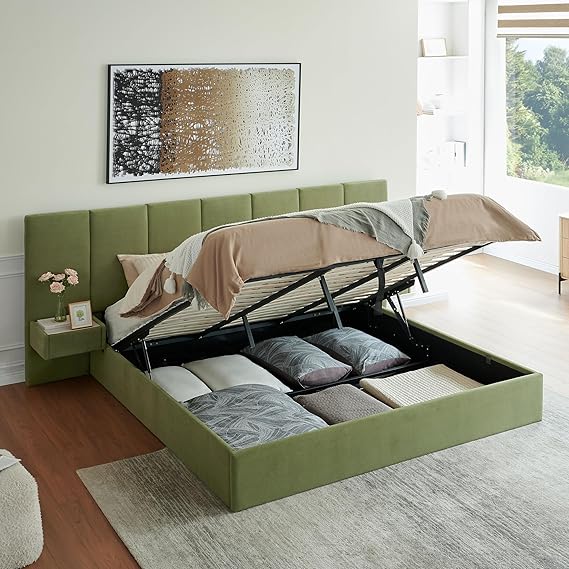 - MULTI-COLOR DECOR OPTIONS: Choose from four elegant shades — Beige, Grey, Brown, and Green — each selected to complement a wide range of interior styles. Whether your room leans modern minimalist, cozy rustic, or bold bohemian, there’s a color that fits your vision and helps your queen bed frame with lift up storage blend seamlessly into your decor