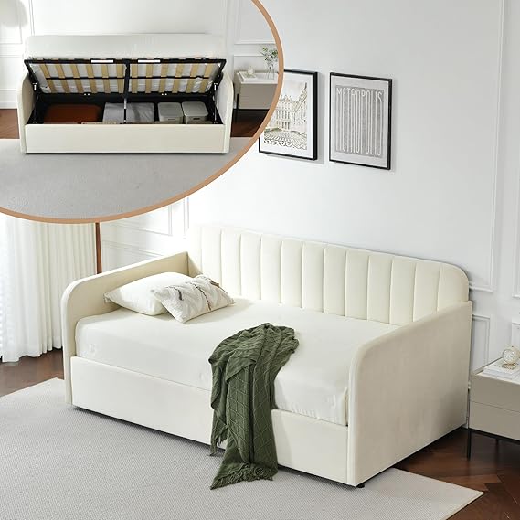 - AMPLE STORAGE SPACE: Equipped with a spacious storage area measuring 74.8"x 40.55"x 9.25", our daybed with storage underneath easily accommodates bedding, clothing, toys, books, and more. The non-woven fabric lining effectively keeps items free from moisture and dust, maintaining cleanliness.We got rid of metal legs for a stronger, more space-saving bed. The storage blends with the design, making it stylish and practical.