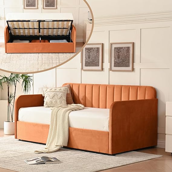Twin Daybed with Storage, Velvet Upholstered Daybed with Vertical Channel